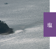 - もう一つの主原料の塩は、味つけはもとより、麺の熟成をうながす重要な役割を担っています。選んだのは、鳴門海峡の塩分の濃い海水からつくられた鳴門の塩。まろやかでミネラル分のバランスがよく、小麦粉本来の旨みを引き出して強いコシを生みます。