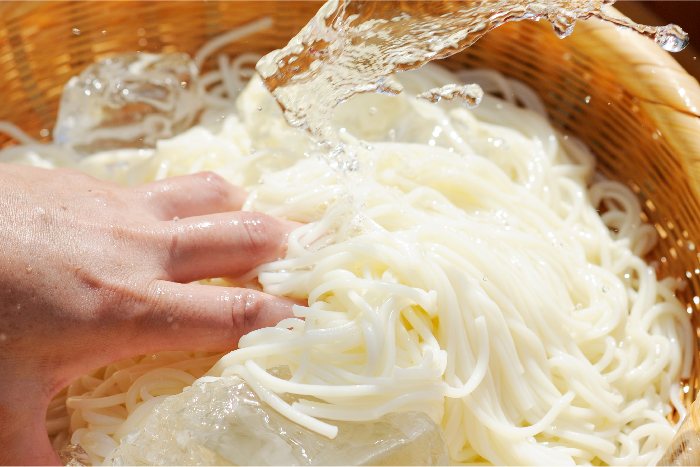 最後に水洗いすると、そうめんの塩分が減少します。