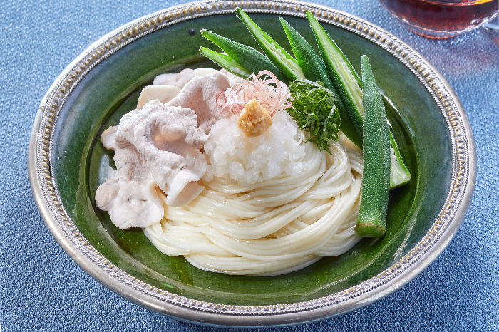 豚しゃぶとオクラ薬味のせ半田めん すだち生姜めんつゆ