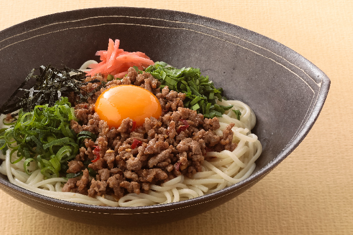 半田めんのモチモチ食感に、豚ひき肉がよいアクセントになる一品です。