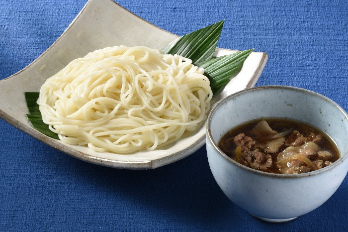 つるっとのど越しの良い半田めんとヘルシーな豚しゃぶの組み合わせは、暑い季節にもおすすめです。