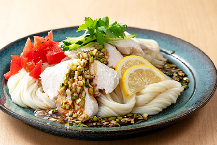 アレンジ多彩な半田めん(半田そうめん)と高タンパクでヘルシーな鶏肉レシピをぜひお試しください。