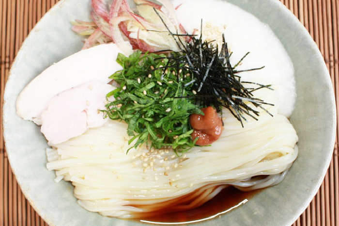 2種類のチキンと梅肉・大葉のぶっかけ半田めんのレシピはコチラ