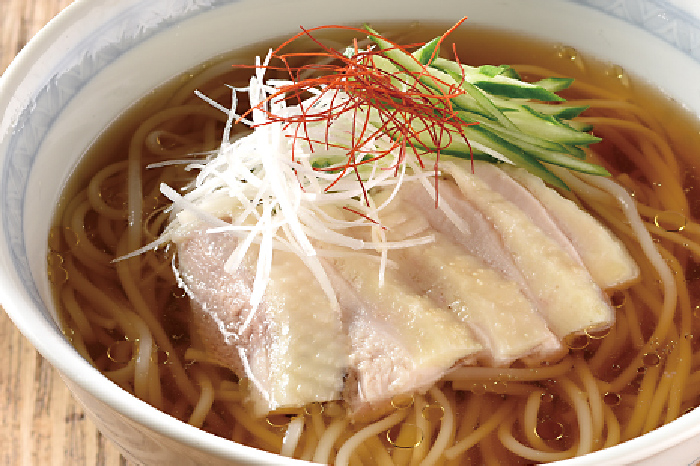鶏肉の満足感と鶏ダシの風味、半田めんの食感を楽しめます。
