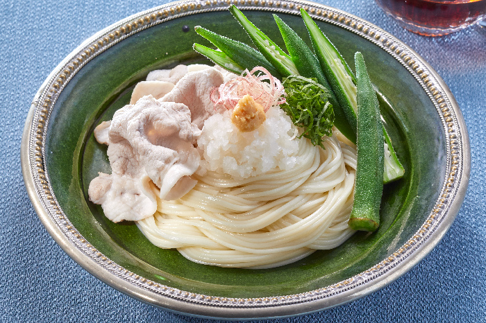 豚しゃぶとオクラ薬味のせ半田めん すだち生姜めんつゆ