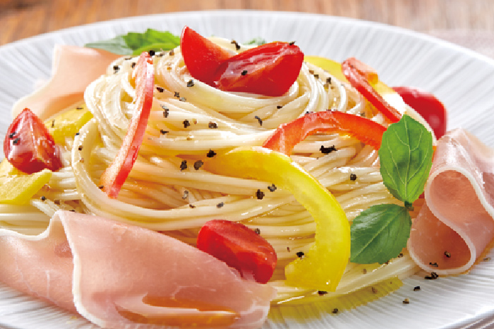 加熱調理をしても形が崩れない半田そうめんを、イタリアン風にアレンジしたオリジナルレシピで食卓を華やかに彩りましょう。