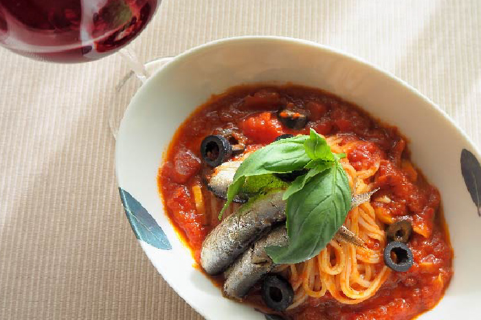 オイルサーディンとオリーブのトマトソース半田めんのレシピはコチラ