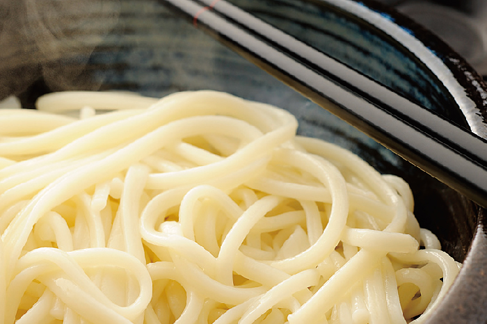 断面の丸さがなめらかな喉ごしを表現し、麺の中心に芯が通ることで歯ごたえを感じられるようになります。