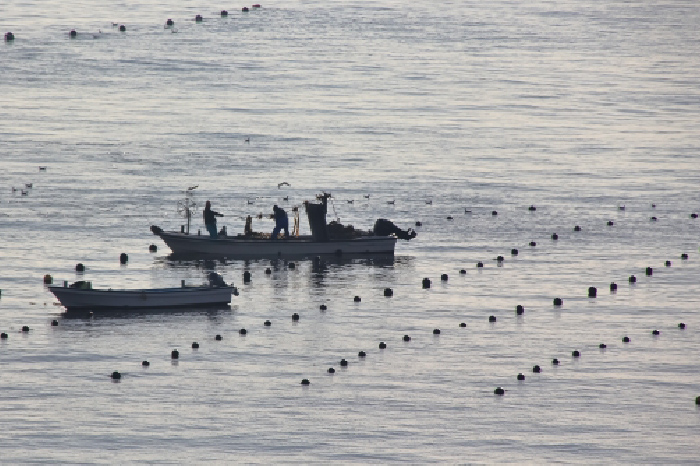 10月から11月にかけて海の養殖網に苗を巻きつけ、冬の間に鳴門海峡の荒く冷たい海流にもまれ、太陽光をたっぷり浴びながら育てます。