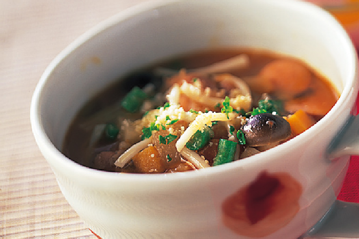 ミネストローネを前の日に作っておけば、朝にそうめんを入れて煮込むだけなのでさらに手軽に作れます。トマトのさっぱりとした味によって食欲が出ない朝でもするすると食べられて、満足感も得られます。そうめんには塩気があるため、具材を炒める際に塩を少なめにすることでよりヘルシーな一品に仕上がります。詳しいレシピは下記からご覧いただけます。