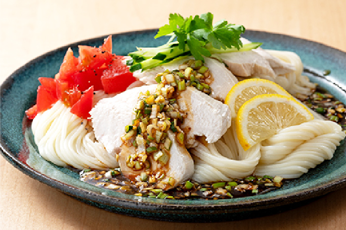 たっぷりのお湯でゆで、流水や氷水でしっかり冷やすことで、めんのコシと喉ごしをより楽しめます。