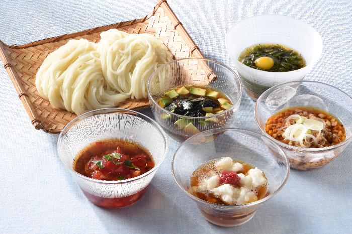 そうめん王道のシンプルな食べ方はそのままに、5種のつけ汁アレンジで最後まで楽しく食べられるレシピです。