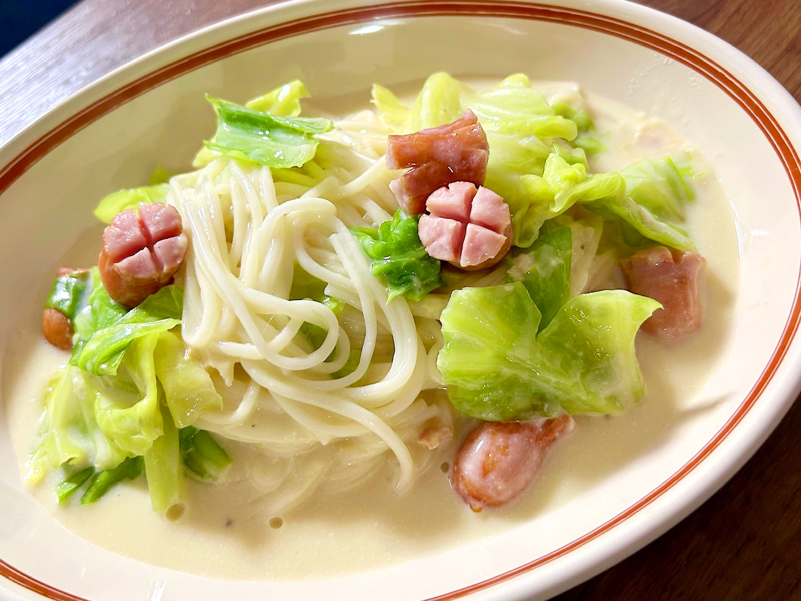 春キャベツを使った簡単カルボナーラ風そうめんレシピ