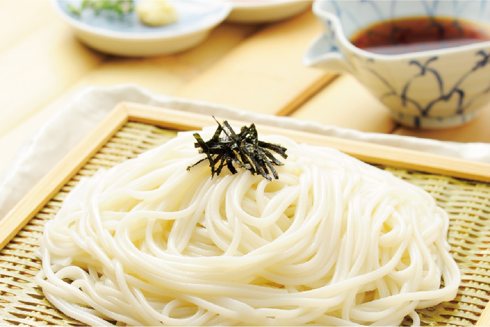 生地を伸ばす時によりをかけて、伸ばしと熟成を繰り返しながら作るため、強いコシと滑らかな喉ごしを生み出します。