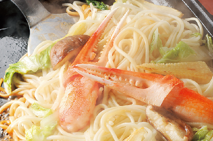 シンプルなそうめんをリメイクして贅沢な焼き麺に。かに爪や野菜の旨みがもちもち麺にからみ、香ばしい風味で箸が止まらなくなるおいしさです。
