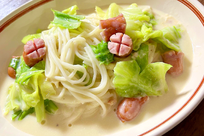 市販のスープで簡単リメイク。クリーミーなスープ仕立ての半田めん(半田そうめん)レシピです。