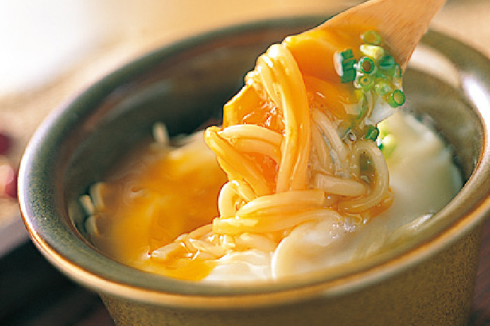 - 半田めんをお湯で温め直して器に盛り、5のスープをたっぷりとかければ出来上がりです。