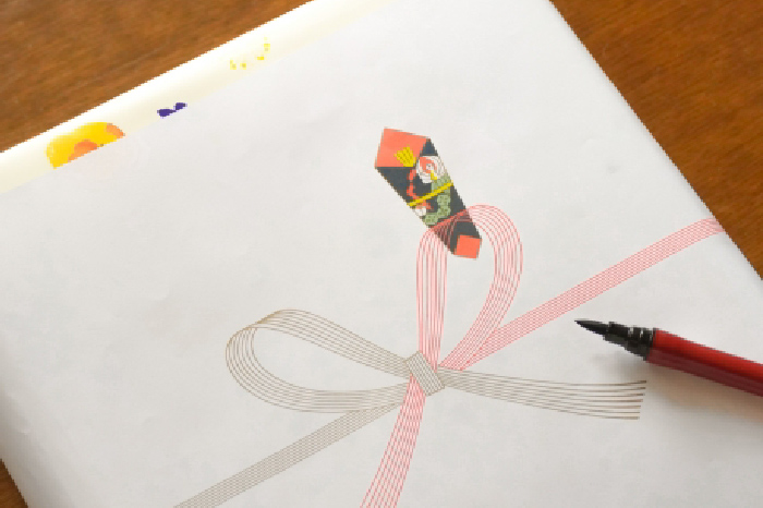 - 水引:紅白または金銀の蝶結びを選びます。