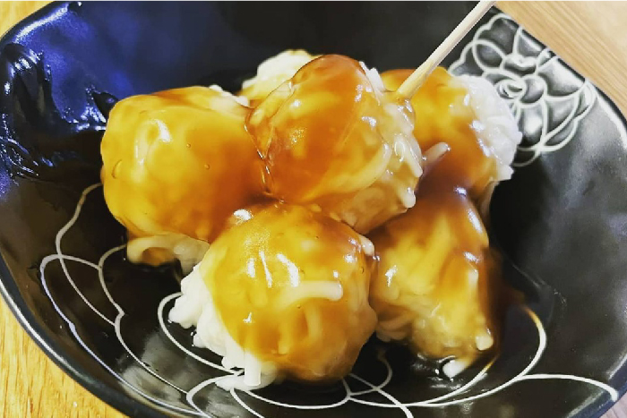 モチモチとした食感のお団子風半田めんと甘いみたらしの相性がバッチリです。