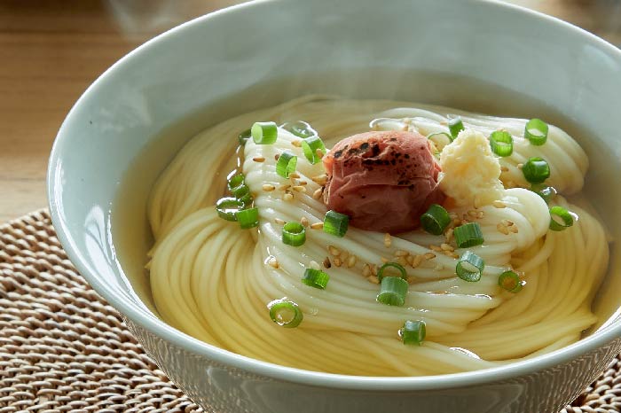 にゅうめんなど温かいレシピで召し上がっていただく場合には、通常よりも短めに茹でるのがポイントです。