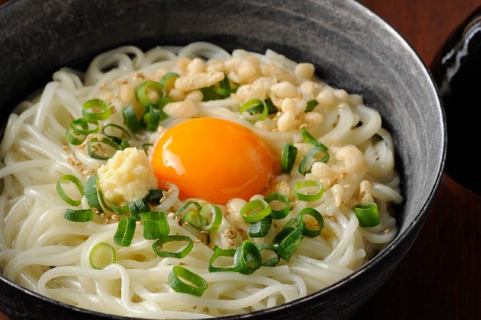 ネギやおろし生姜、揚げ玉などシンプルなトッピングもよし、天ぷらなど豪華に盛り付けるのもよし、アレンジを楽しんでみてください。