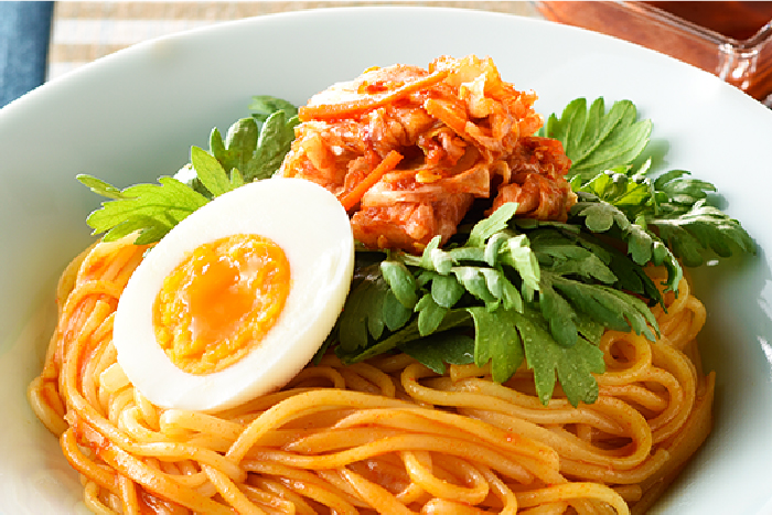 キムチとコチュジャンがあれば、そうめんが韓国風ピリ辛ビビン麺へと早変わりします。