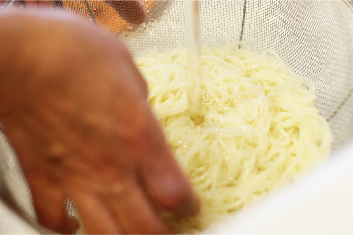 その粉をしっかり落とすように、茹で上がった後は流水でよくもみ洗いをしましょう。
