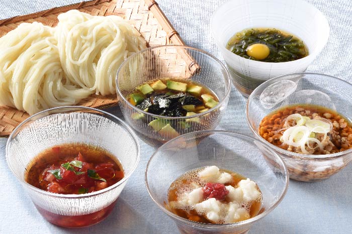 そうめんは食感や味にくせがないため、どのような食材とも合わせられる万能さが強みです。