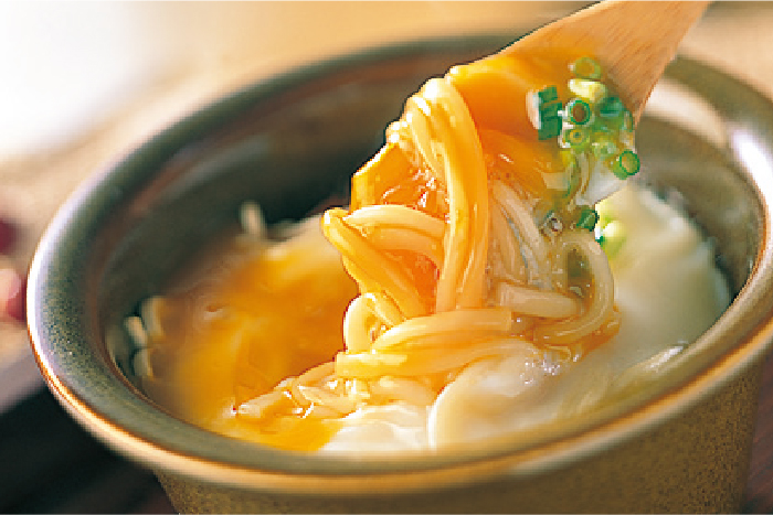 お汁にそうめんを入れる場合は、具材に火が通った後に凍ったままのそうめんを入れてください。