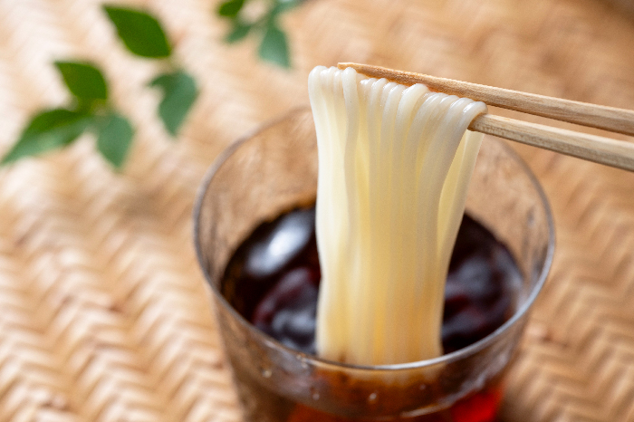 そうめんはその細く長い形状から、「末永く続く幸せ」を表しているとされており、結婚式の引き出物に選ばれたりお供えされたりもする、縁起物として選ばれる食べ物です。