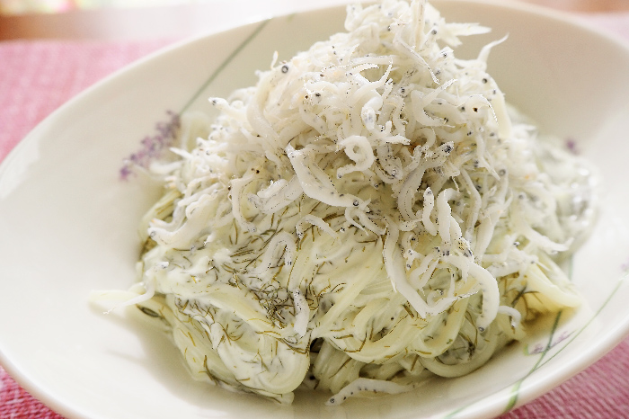 釜揚げしらすと海苔のクリーム半田めん(半田そうめん)