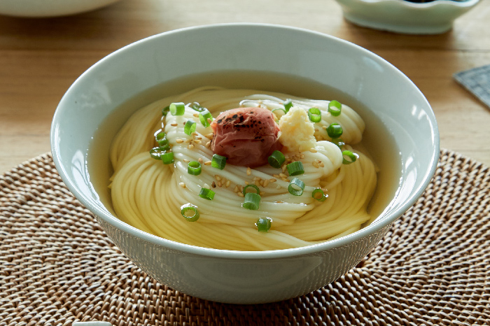 手間なく、簡単にできるのが嬉しいそうめんレシピは、梅干しに少し焼き目を入れるのがポイントです。