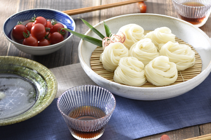 伝統の手延べ製法でつくる半田そうめんは、シンプルな素材でできた徳島県の名産品。