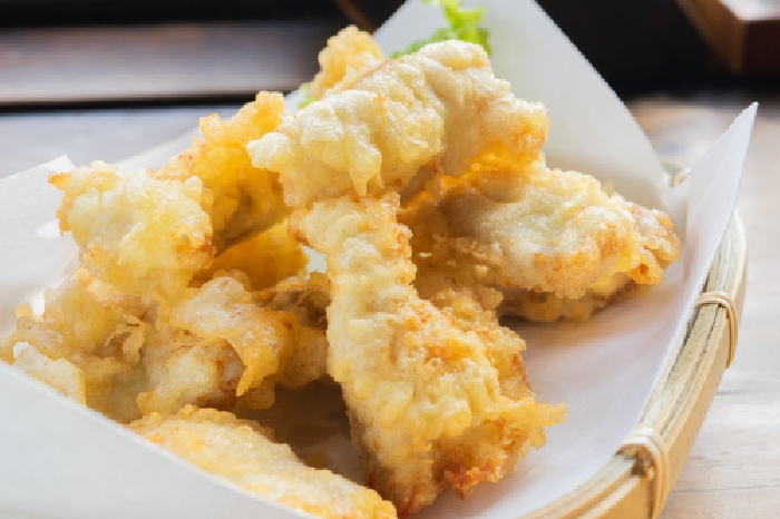 もっちり弾力のあるちくわにカリッと香ばしい衣をまとわせた一品。ほどよい塩気がそうめんのうまみを引き立てます。