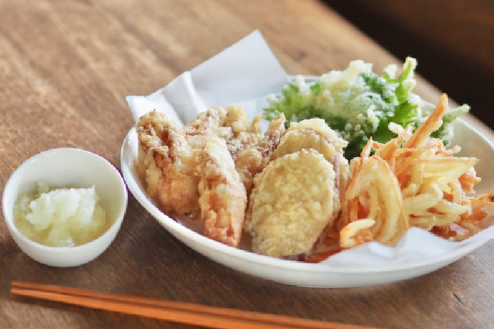 ジューシーな鶏肉の旨みを閉じ込めたとり天は、ほんのりニンニク香る衣が食欲をそそります。満足感をアップさせてくれる付け合わせです。