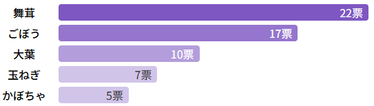 一番人気は「舞茸」でした!ほかにも玉ねぎ、ごぼうなども多くの食卓で親しまれているようです。