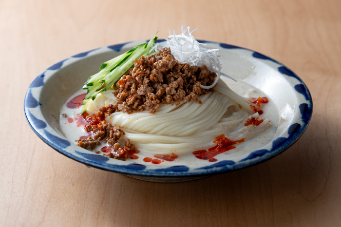 暑い日でもしっかり食べたいときにおすすめなのが、「肉そぼろのせ冷製豆乳坦々の半田めん」です。