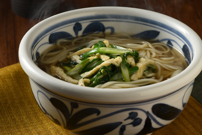 関東の年越しそばは、かつおだしに濃い口しょうゆで味付けされています。