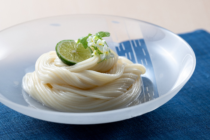 小野製麺の定番「半田めん」と同じ製法でつくった「手延べうどん」は、コシの強さが特徴です。