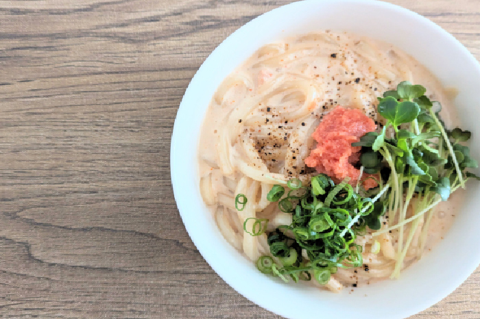 冷蔵庫に明太子があれば、汁なしうどんに和えて明太子パスタ風に仕上げるのもおすすめです。
