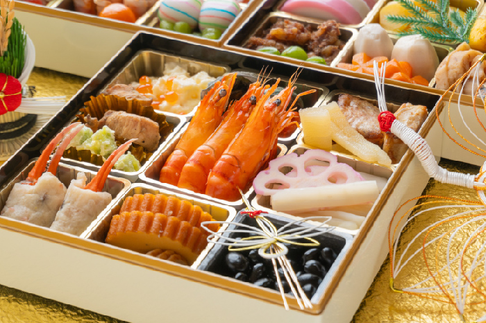 にしんの子である数の子は「二親(にしん)から多くの子が出る」として「子孫繁栄」を、曲がった背中をお年寄りにたとえて「腰が曲がるまで長生きできるように」と「健康長寿」を願った海老など、さまざまな由来があります。