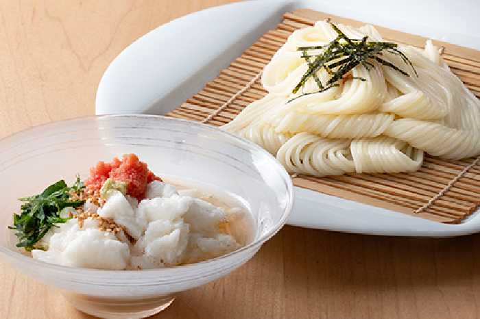 つるんとモチモチの半田めん(半田そうめん)を長芋と明太子のサクサク・ぷちぷち食感が楽しめるつゆと共に、シンプルな半田めんの小麦の味わいをお楽しみいただけるメニューです。