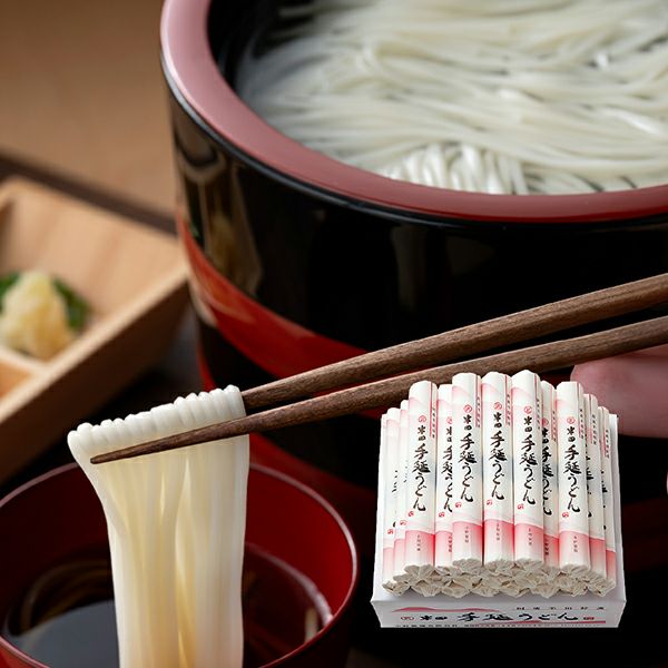 小麦粒の中心・胚乳部分を厳選した小麦粉、まろやかな鳴門の塩、吉野川の伏流水にこだわり、伝統の手延べ製法でていねいに作りあげた手延うどん。小麦粉の香りと旨みが豊かで、しっとりとした艶とコシの強いしなやかな麺。冷麺にも温麺にも最適!これからの季節に通販でのお取り寄せやギフトにもおすすめです。