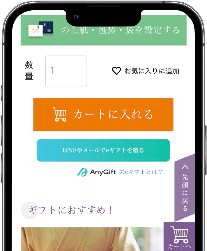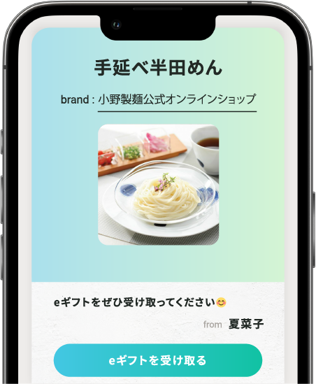 ご注文者は商品ページの「LINEやメールでeギフトを贈る」からご購入手続きに進み、注文完了後に発行される受け取り用ページのURLを送ることでギフトをお届けすることができます。