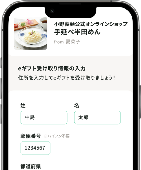 お受け取り側は、配送先を入力するとギフトが届きます。