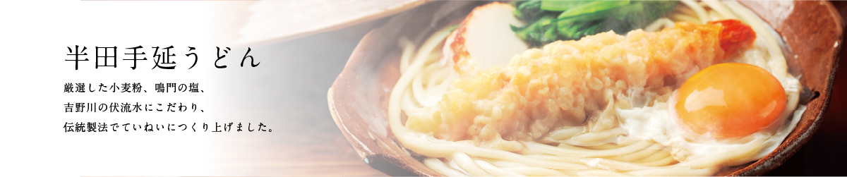 熟成と延ばしを繰り返す半田めんと同じ製法でつくられた手延べうどん。コシの強さとのど越しが違います。