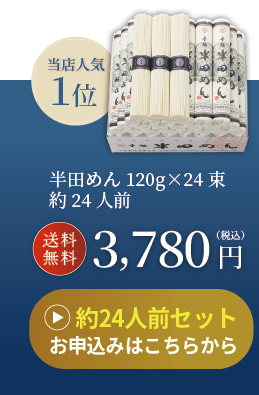 - 細くて長い「半田めん」は、長くお付き合いできる縁起物としてご贈答用に選ばれています。小野製麺の「半田めん」は多くのお客様に、ご贈答用として買い求 めいただいております。