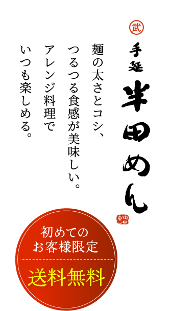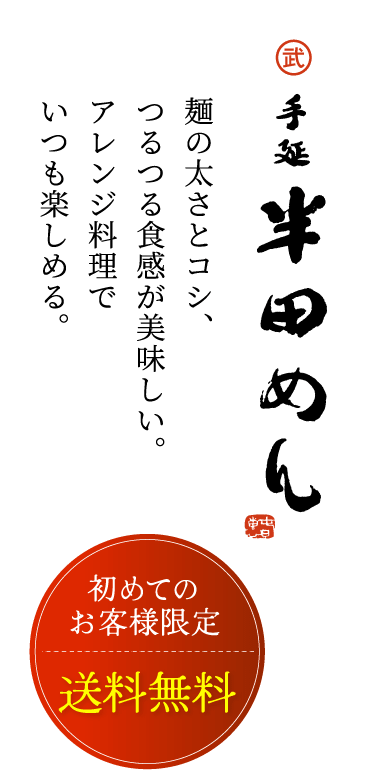 ぜひ一度は「半田めん」をお召し上がりいただければと思います。豊富なアレンジレシピで冷麺でも温麺でも美味しい。無料のギフトサービスでご贈答にも最適です。