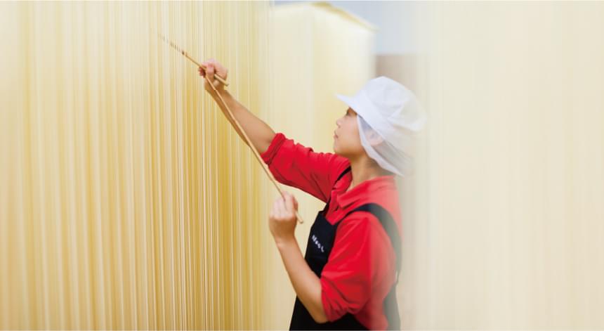 伝統の手延べ製法を守り、従業員が一丸となって、