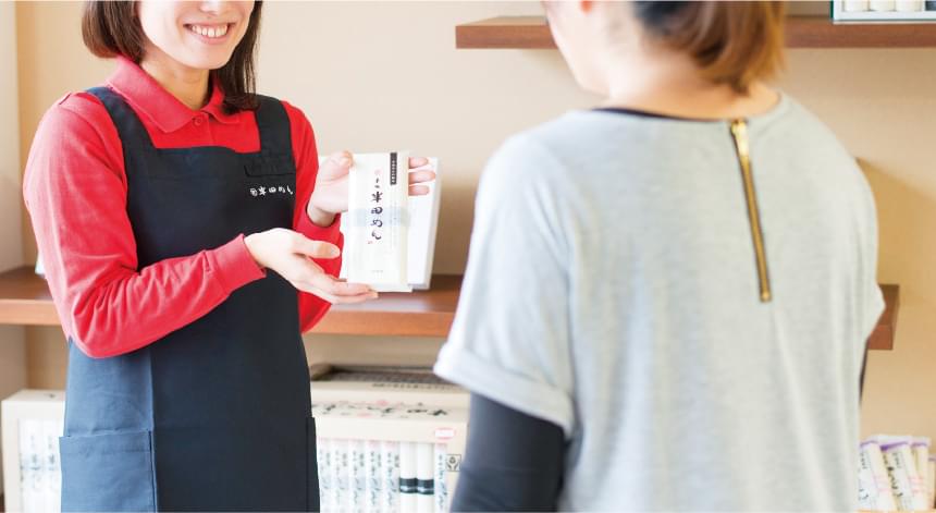 小野製麺の「手延半田めん」は唯一無二の味わい、お買い上げいただいたお客さまからは、「半田めんは、おたくのじゃなきゃダメ!」と毎年ご注文いただく方が多くいらっしゃいます。大変高いリピート率で、お客さまにご愛顧いただいております。ホームページからのご注文はもちろんですが、お電話でのご注文も専門スタッフが承ります。